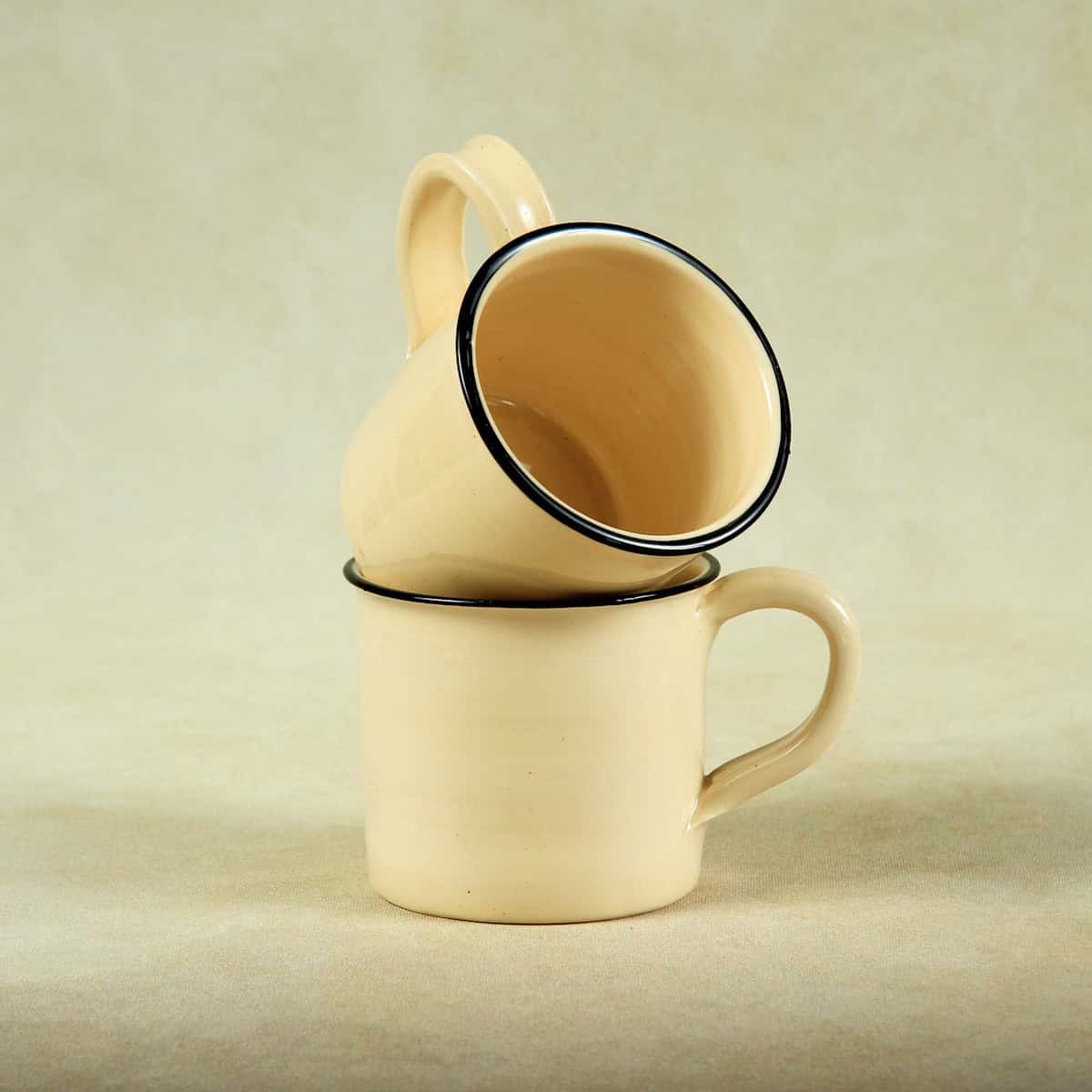Inspired by the gold rush days of Pilgrim’s Rest, the Diggers Mug brings the charm of classic enamel campware to your kitchen table. Wheel-thrown from earthenware and finished with a transparent glaze on O-mix clay body, each mug features a signature black rim that echoes the look of traditional camp mugs — reimagined in handcrafted ceramic.